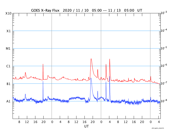 2020/11/ 8 12:10 2781群でCクラスのフレアが続いています。太陽風は再び高速になりました。