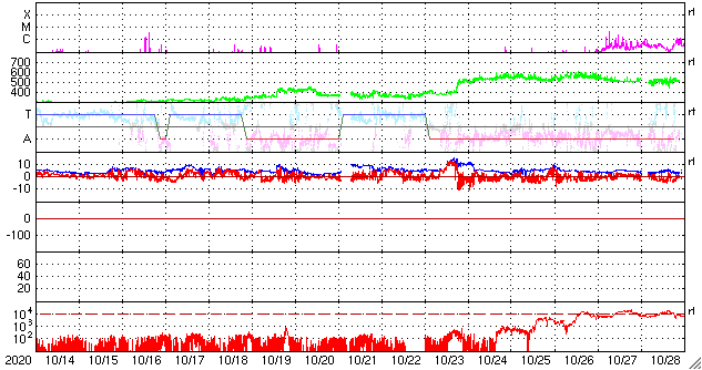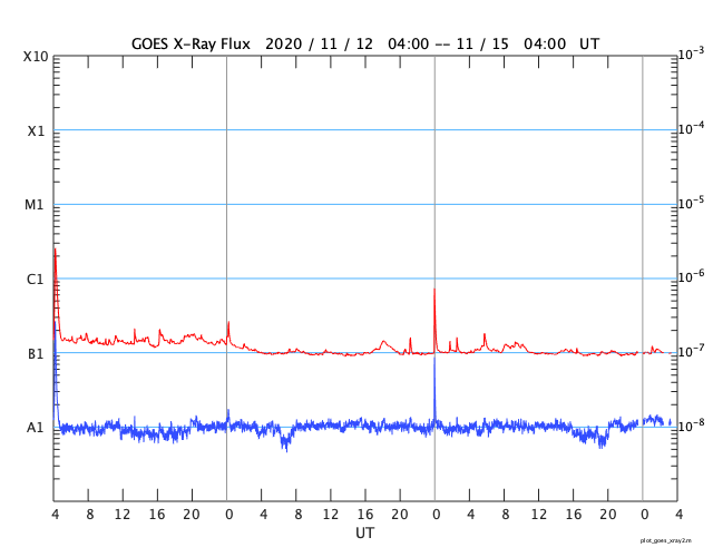 GOES衛星の太陽X線強度。赤・橙 = 0.1〜0.8 nm、青・紫 = 0.05〜0.4 nm (c) データ:NOAA/SWPC、作図:宇宙天気ニュース ![]() | |||||||||||||||||||||||||||||||||||||||||||||||||||||||||||||||||||||||||||||||||||||||||||||||||||||||||||||||||||||||||||||||||||||||||||||||||||||||||||||||||||||||||||||||||||||||||||||||||||||||||