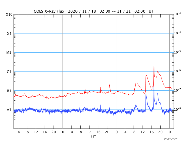 GOES衛星の太陽X線強度。赤・橙 = 0.1〜0.8 nm、青・紫 = 0.05〜0.4 nm (c) データ:NOAA/SWPC、作図:宇宙天気ニュース ![]() | |||||||||||||||||||||||||||||||||||||||||||||||||||||||||||||||||||||||||||||||||||||||||||||||||||||||||||||||||||||||||||||||||||||||||||||||||||||||||||||||||||||||||||||||||||||||||||||||||||||||||||