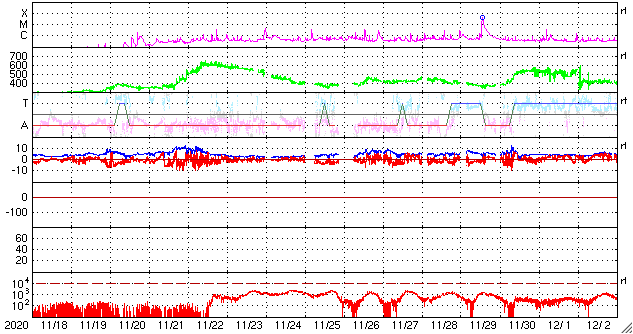 GOES衛星の太陽X線強度。赤・橙 = 0.1〜0.8 nm、青・紫 = 0.05〜0.4 nm (c) データ:NOAA/SWPC、作図:宇宙天気ニュース ![]() | |||||||||||||||||||||||||||||||||||||||||||||||||||||||||||||||||||||||||||||||||||||||||||||||||||||||||||||||||||||||||||||||||||||||||||||||||||||||||||||||||||||||||||||||||||||||||||||||||||||||||