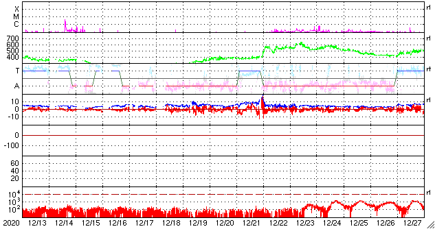 GOES衛星の太陽X線強度。赤・橙 = 0.1〜0.8 nm、青・紫 = 0.05〜0.4 nm (c) データ:NOAA/SWPC、作図:宇宙天気ニュース ![]() | |||||||||||||||||||||||||||||||||||||||||||||||||||||||||||||||||||||||||||||||||||||||||||||||||||||||||||||||||||||||||||||||||||||||||||||||||||||||||||||||||||||||||||||||||||||||||||||||||||||||||