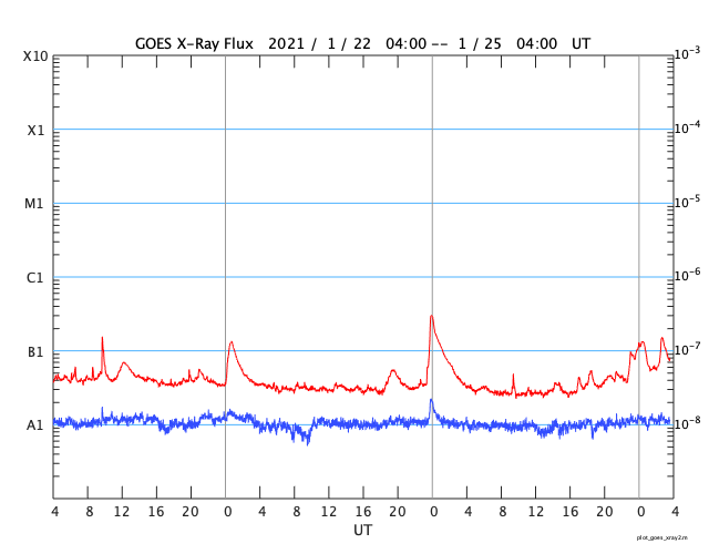 GOES衛星の太陽X線強度。赤・橙 = 0.1〜0.8 nm、青・紫 = 0.05〜0.4 nm (c) データ:NOAA/SWPC、作図:宇宙天気ニュース ![]() | |||||||||||||||||||||||||||||||||||||||||||||||||||||||||||||||||||||||||||||||||||||||||||||||||||||||||||||||||||||||||||||||||||||||||||||||||||||||||||||||||||||||||||||||||||||||||||||||||||||||||||||