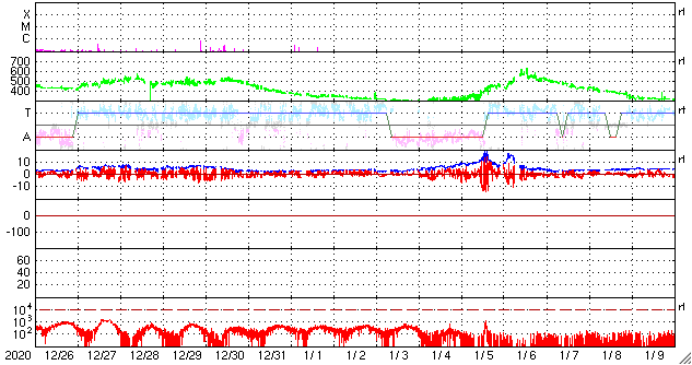 磁場強度は、4〜5nTと平均的な状態です。