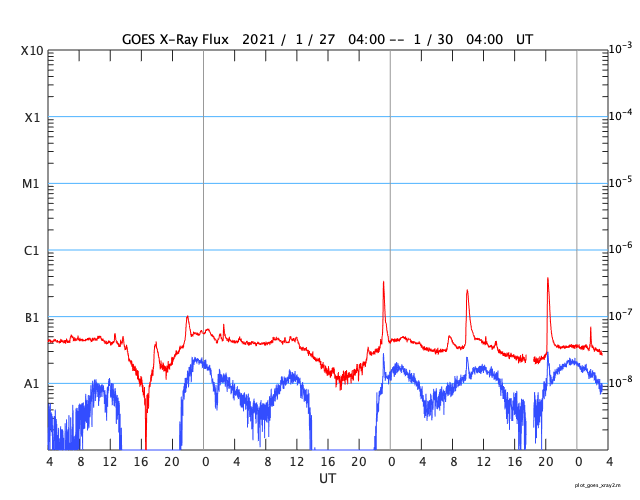 GOES衛星の太陽X線強度。赤・橙 = 0.1〜0.8 nm、青・紫 = 0.05〜0.4 nm (c) データ:NOAA/SWPC、作図:宇宙天気ニュース ![]() | |||||||||||||||||||||||||||||||||||||||||||||||||||||||||||||||||||||||||||||||||||||||||||||||||||||||||||||||||||||||||||||||||||||||||||||||||||||||||||||||||||||||||||||||||||||||||||||||||||||||||