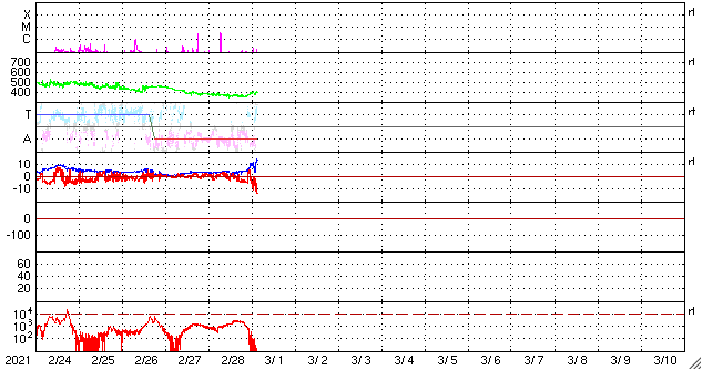 GOES衛星の太陽X線強度。赤・橙 = 0.1〜0.8 nm、青・紫 = 0.05〜0.4 nm (c) データ:NOAA/SWPC、作図:宇宙天気ニュース ![]() | ||||||||||||||||||||||||||||||||||||||||||||||||||||||||||||||||||||||||||||||||||||||||||||||||||||||||||||||||||||||||||||||||||||||||||||||||||||||||||||||||||||||||||||||||||||||||||||||||||||||||||||