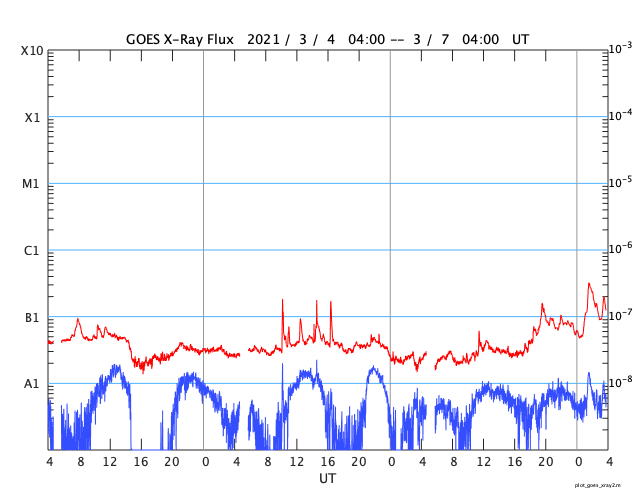 GOES衛星の太陽X線強度。赤・橙 = 0.1〜0.8 nm、青・紫 = 0.05〜0.4 nm (c) データ:NOAA/SWPC、作図:宇宙天気ニュース ![]() | |||||||||||||||||||||||||||||||||||||||||||||||||||||||||||||||||||||||||||||||||||||||||||||||||||||||||||||||||||||||||||||||||||||||||||||||||||||||||||||||||||||||||||||||||||||||||||||||||||||||||||||||