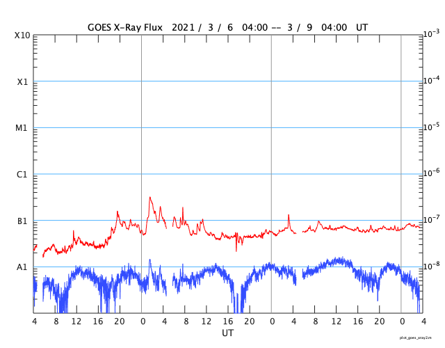 GOES衛星の太陽X線強度。赤・橙 = 0.1〜0.8 nm、青・紫 = 0.05〜0.4 nm (c) データ:NOAA/SWPC、作図:宇宙天気ニュース ![]() | |||||||||||||||||||||||||||||||||||||||||||||||||||||||||||||||||||||||||||||||||||||||||||||||||||||||||||||||||||||||||||||||||||||||||||||||||||||||||||||||||||||||||||||||||||||||||||||||||||||||||||