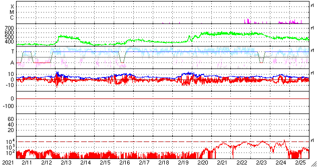 GOES衛星の太陽X線強度。赤・橙 = 0.1〜0.8 nm、青・紫 = 0.05〜0.4 nm (c) データ:NOAA/SWPC、作図:宇宙天気ニュース ![]() | |||||||||||||||||||||||||||||||||||||||||||||||||||||||||||||||||||||||||||||||||||||||||||||||||||||||||||||||||||||||||||||||||||||||||||||||||||||||||||||||||||||||||||||||||||||||||||||||||||||||||||||