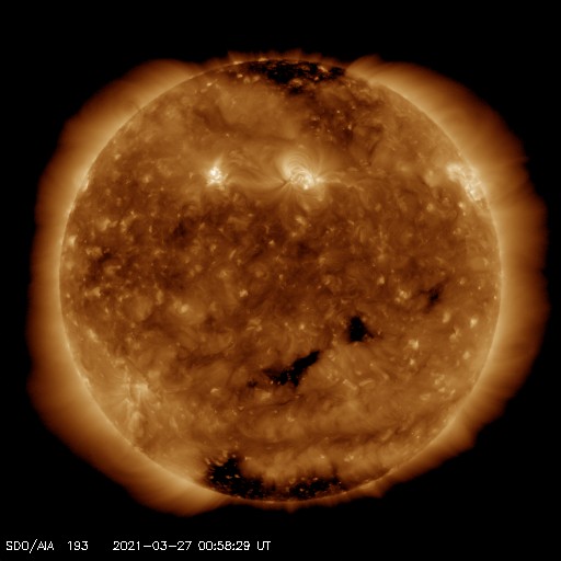2021/ 3/24 12:46 高速太陽風は終わり、平均的な速さに戻っています。