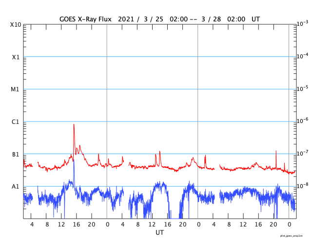GOES衛星の太陽X線強度。赤・橙 = 0.1〜0.8 nm、青・紫 = 0.05〜0.4 nm (c) データ:NOAA/SWPC、作図:宇宙天気ニュース ![]() | |||||||||||||||||||||||||||||||||||||||||||||||||||||||||||||||||||||||||||||||||||||||||||||||||||||||||||||||||||||||||||||||||||||||||||||||||||||||||||||||||||||||||||||||||||||||||||||||||||||||||||