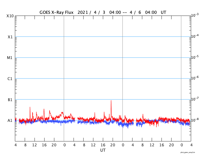 GOES衛星の太陽X線強度。赤・橙 = 0.1〜0.8 nm、青・紫 = 0.05〜0.4 nm (c) データ:NOAA/SWPC、作図:宇宙天気ニュース ![]() | |||||||||||||||||||||||||||||||||||||||||||||||||||||||||||||||||||||||||||||||||||||||||||||||||||||||||||||||||||||||||||||||||||||||||||||||||||||||||||||||||||||||||||||||||||||||||||||||||||||||||||