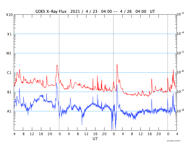 GOES衛星の太陽X線強度。赤・橙 = 0.1〜0.8 nm、青・紫 = 0.05〜0.4 nm (c) データ:NOAA/SWPC、作図:宇宙天気ニュース ![]() | |||||||||||||||||||||||||||||||||||||||||||||||||||||||||||||||||||||||||||||||||||||||||||||||||||||||||||||||||||||||||||||||||||||||||||||||||||||||||||||||||||||||||||||||||||||||||||||||||||||||||||||||||||||||