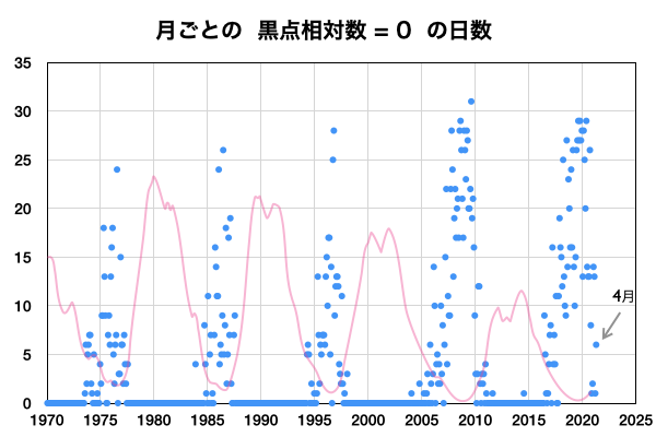 (c) 黒点データ:WDC-SILSO、作図:宇宙天気ニュース ![]() 1970年以降の太陽黒点相対数の長期変化。 (c) 黒点データ:WDC-SILSO、作図:宇宙天気ニュース ![]() 1970年以降の月毎の無黒点日の日数。 (c) 黒点データ:WDC-SILSO、作図:宇宙天気ニュース ![]() 太陽に接近する小型の彗星。SOHO衛星LASCO C2、C3。 (c) SOHO (ESA & NASA)、 (動画加工 : 宇宙天気ニュース) ![]() SDO衛星のAIA193カメラによる太陽コロナの様子 (c) SDO (NASA) ![]() SDO衛星による太陽の可視光写真。マウスの矢印を写真に重ねると、黒点番号付きの写真に切り替わります。 (c) SDO (NASA) ![]() GOES衛星の太陽X線強度。赤・橙 = 0.1〜0.8 nm、青・紫 = 0.05〜0.4 nm (c) データ:NOAA/SWPC、作図:宇宙天気ニュース ![]() DSCOVRが観測した太陽風の磁場(1番上の枠、黒線は全体の強度、赤線は南北成分) および、太陽風の密度(3番目の紫線)、速度(4番目の青線) (c) データ:NOAA/SWPC、作図:宇宙天気ニュース ![]() AE指数(速報値) 下段のAEグラフの値が高くなると、オーロラ活動が活発化しています。 (c) 京都大学WDC ![]() ![]() 27日の太陽周期に合わせたデータプロット 太陽が同じ面を地球に向けていた27日前の変化から、今後を予想することができます。 (c) 作図:宇宙天気ニュース