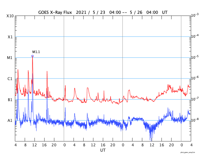 GOES衛星の太陽X線強度。赤・橙 = 0.1〜0.8 nm、青・紫 = 0.05〜0.4 nm (c) データ:NOAA/SWPC、作図:宇宙天気ニュース ![]() | ||||||||||||||||||||||||||||||||||||||||||||||||||||||||||||||||||||||||||||||||||||||||||||||||||||||||||||||||||||||||||||||||||||||||||||||||||||||||||||||||||||||||||||||||||||||||||||||||||||||||||||||||