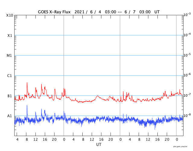 GOES衛星の太陽X線強度。赤・橙 = 0.1〜0.8 nm、青・紫 = 0.05〜0.4 nm (c) データ:NOAA/SWPC、作図:宇宙天気ニュース ![]() | ||||||||||||||||||||||||||||||||||||||||||||||||||||||||||||||||||||||||||||||||||||||||||||||||||||||||||||||||||||||||||||||||||||||||||||||||||||||||||||||||||||||||||||||||||||||||||||||||||||||||||||||||||||
