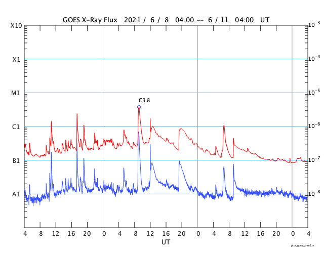 GOES衛星の太陽X線強度。赤・橙 = 0.1〜0.8 nm、青・紫 = 0.05〜0.4 nm (c) データ:NOAA/SWPC、作図:宇宙天気ニュース ![]() | ||||||||||||||||||||||||||||||||||||||||||||||||||||||||||||||||||||||||||||||||||||||||||||||||||||||||||||||||||||||||||||||||||||||||||||||||||||||||||||||||||||||||||||||||||||||||||||||||||||||||||||||||||||||