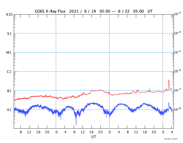 GOES衛星の太陽X線強度。赤・橙 = 0.1〜0.8 nm、青・紫 = 0.05〜0.4 nm (c) データ:NOAA/SWPC、作図:宇宙天気ニュース ![]() | ||||||||||||||||||||||||||||||||||||||||||||||||||||||||||||||||||||||||||||||||||||||||||||||||||||||||||||||||||||||||||||||||||||||||||||||||||||||||||||||||||||||||||||||||||||||||||||||||||||||||||||