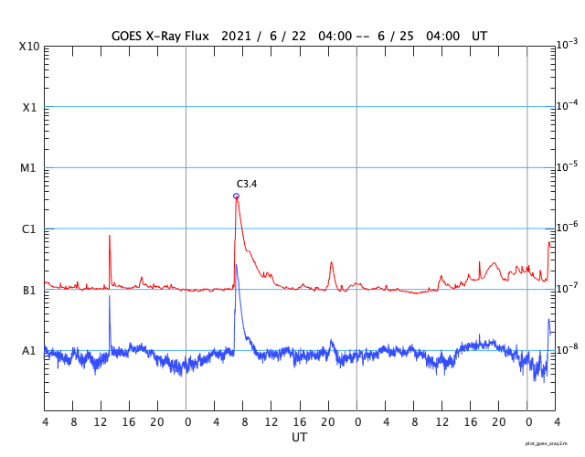 GOES衛星の太陽X線強度。赤・橙 = 0.1〜0.8 nm、青・紫 = 0.05〜0.4 nm (c) データ:NOAA/SWPC、作図:宇宙天気ニュース ![]() | ||||||||||||||||||||||||||||||||||||||||||||||||||||||||||||||||||||||||||||||||||||||||||||||||||||||||||||||||||||||||||||||||||||||||||||||||||||||||||||||||||||||||||||||||||||||||||||||||||||||||||||