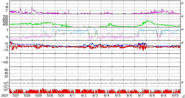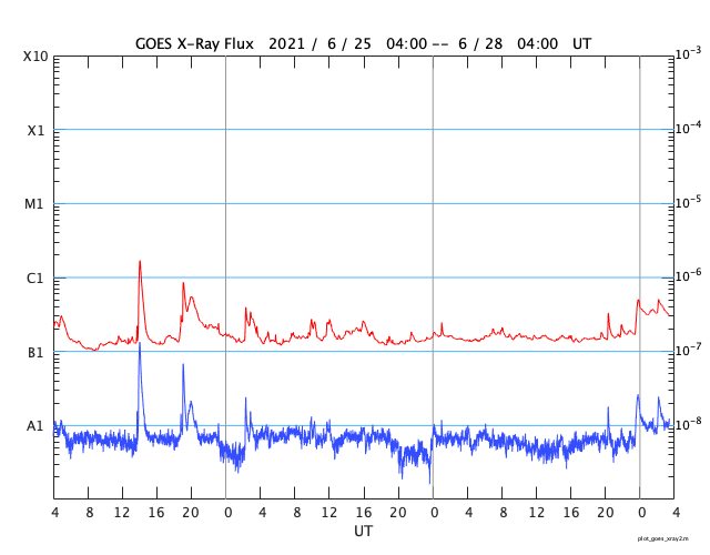 GOES衛星の太陽X線強度。赤・橙 = 0.1〜0.8 nm、青・紫 = 0.05〜0.4 nm (c) データ:NOAA/SWPC、作図:宇宙天気ニュース ![]() | ||||||||||||||||||||||||||||||||||||||||||||||||||||||||||||||||||||||||||||||||||||||||||||||||||||||||||||||||||||||||||||||||||||||||||||||||||||||||||||||||||||||||||||||||||||||||||||||||||||||||||||||
