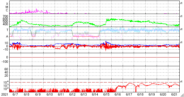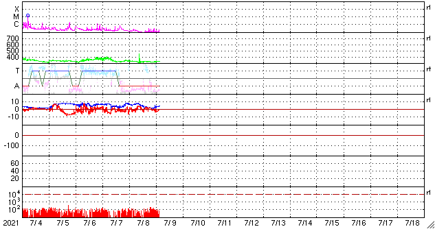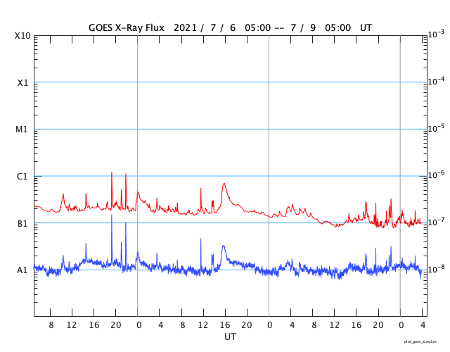 GOES衛星の太陽X線強度。赤・橙 = 0.1〜0.8 nm、青・紫 = 0.05〜0.4 nm (c) データ:NOAA/SWPC、作図:宇宙天気ニュース ![]() | ||||||||||||||||||||||||||||||||||||||||||||||||||||||||||||||||||||||||||||||||||||||||||||||||||||||||||||||||||||||||||||||||||||||||||||||||||||||||||||||||||||||||||||||||||||||||||||||||||||||||||||||