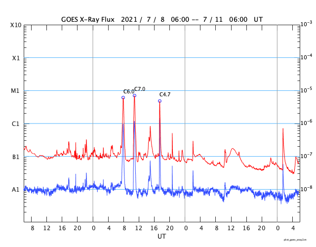 GOES衛星の太陽X線強度。赤・橙 = 0.1〜0.8 nm、青・紫 = 0.05〜0.4 nm (c) データ:NOAA/SWPC、作図:宇宙天気ニュース ![]() | |||||||||||||||||||||||||||||||||||||||||||||||||||||||||||||||||||||||||||||||||||||||||||||||||||||||||||||||||||||||||||||||||||||||||||||||||||||||||||||||||||||||||||||||||||||||||||||||||||||||||||||||||||