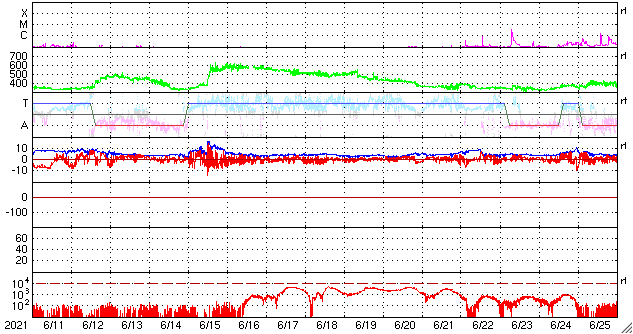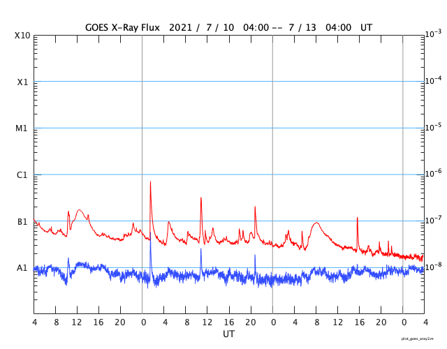 GOES衛星の太陽X線強度。赤・橙 = 0.1〜0.8 nm、青・紫 = 0.05〜0.4 nm (c) データ:NOAA/SWPC、作図:宇宙天気ニュース ![]() | ||||||||||||||||||||||||||||||||||||||||||||||||||||||||||||||||||||||||||||||||||||||||||||||||||||||||||||||||||||||||||||||||||||||||||||||||||||||||||||||||||||||||||||||||||||||||||||||||||||||||||||||