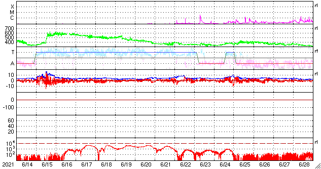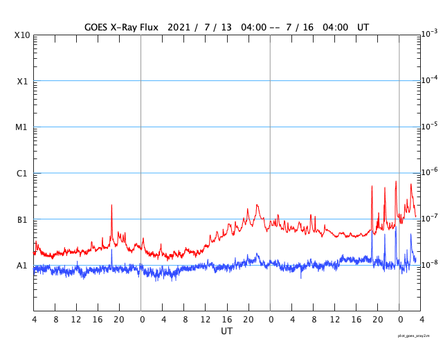 GOES衛星の太陽X線強度。赤・橙 = 0.1〜0.8 nm、青・紫 = 0.05〜0.4 nm (c) データ:NOAA/SWPC、作図:宇宙天気ニュース ![]() | ||||||||||||||||||||||||||||||||||||||||||||||||||||||||||||||||||||||||||||||||||||||||||||||||||||||||||||||||||||||||||||||||||||||||||||||||||||||||||||||||||||||||||||||||||||||||||||||||||||||||||||||||