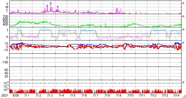 GOES衛星の太陽X線強度。赤・橙 = 0.1〜0.8 nm、青・紫 = 0.05〜0.4 nm (c) データ:NOAA/SWPC、作図:宇宙天気ニュース ![]() | ||||||||||||||||||||||||||||||||||||||||||||||||||||||||||||||||||||||||||||||||||||||||||||||||||||||||||||||||||||||||||||||||||||||||||||||||||||||||||||||||||||||||||||||||||||||||||||||||||||||||||||