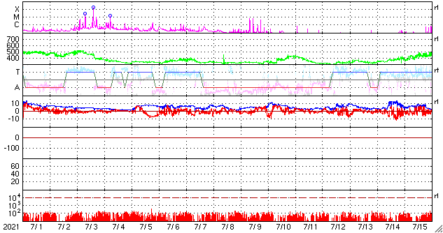GOES衛星の太陽X線強度。赤・橙 = 0.1〜0.8 nm、青・紫 = 0.05〜0.4 nm (c) データ:NOAA/SWPC、作図:宇宙天気ニュース ![]() | ||||||||||||||||||||||||||||||||||||||||||||||||||||||||||||||||||||||||||||||||||||||||||||||||||||||||||||||||||||||||||||||||||||||||||||||||||||||||||||||||||||||||||||||||||||||||||||||||||||||||||