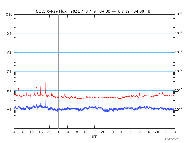 GOES衛星の太陽X線強度。赤・橙 = 0.1〜0.8 nm、青・紫 = 0.05〜0.4 nm (c) データ:NOAA/SWPC、作図:宇宙天気ニュース ![]() | ||||||||||||||||||||||||||||||||||||||||||||||||||||||||||||||||||||||||||||||||||||||||||||||||||||||||||||||||||||||||||||||||||||||||||||||||||||||||||||||||||||||||||||||||||||||||||||||||||||||||||||||