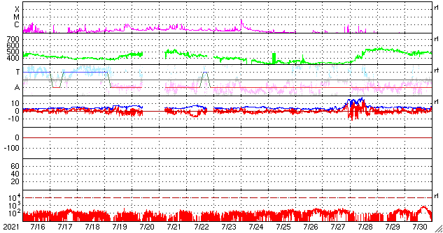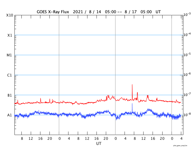 GOES衛星の太陽X線強度。赤・橙 = 0.1〜0.8 nm、青・紫 = 0.05〜0.4 nm (c) データ:NOAA/SWPC、作図:宇宙天気ニュース ![]() | ||||||||||||||||||||||||||||||||||||||||||||||||||||||||||||||||||||||||||||||||||||||||||||||||||||||||||||||||||||||||||||||||||||||||||||||||||||||||||||||||||||||||||||||||||||||||||||||||||||||||||