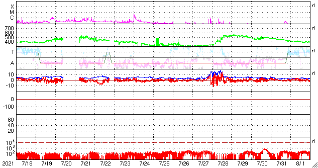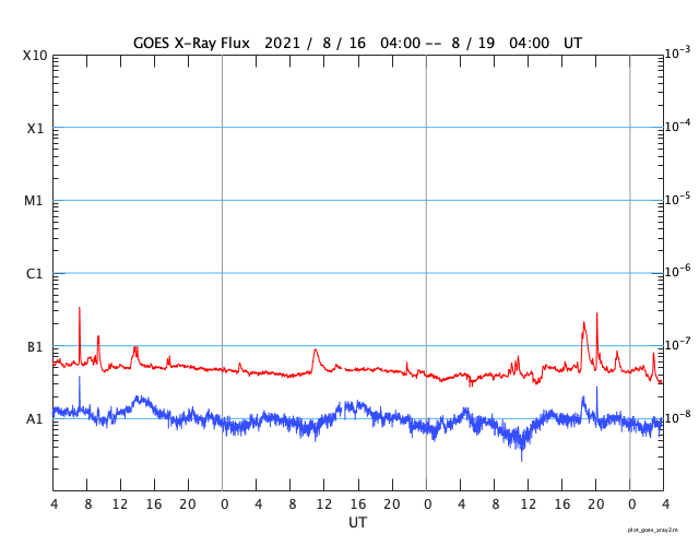 GOES衛星の太陽X線強度。赤・橙 = 0.1〜0.8 nm、青・紫 = 0.05〜0.4 nm (c) データ:NOAA/SWPC、作図:宇宙天気ニュース ![]() | ||||||||||||||||||||||||||||||||||||||||||||||||||||||||||||||||||||||||||||||||||||||||||||||||||||||||||||||||||||||||||||||||||||||||||||||||||||||||||||||||||||||||||||||||||||||||||||||||||||||||||||