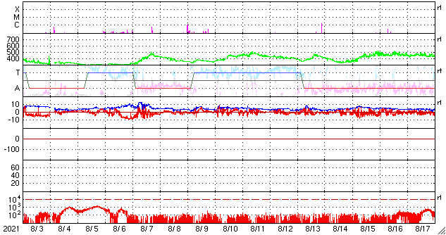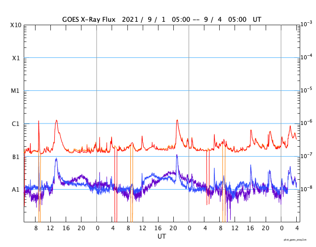 GOES衛星の太陽X線強度。赤・橙 = 0.1〜0.8 nm、青・紫 = 0.05〜0.4 nm (c) データ:NOAA/SWPC、作図:宇宙天気ニュース ![]() | ||||||||||||||||||||||||||||||||||||||||||||||||||||||||||||||||||||||||||||||||||||||||||||||||||||||||||||||||||||||||||||||||||||||||||||||||||||||||||||||||||||||||||||||||||||||||||||||||||||||||||||||||