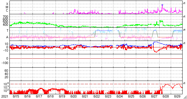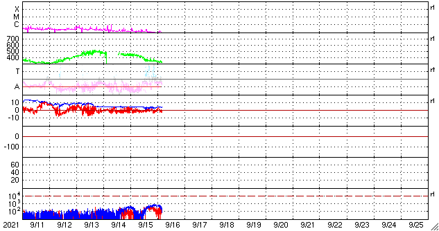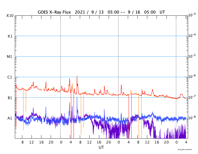 GOES衛星の太陽X線強度。赤・橙 = 0.1〜0.8 nm、青・紫 = 0.05〜0.4 nm (c) データ:NOAA/SWPC、作図:宇宙天気ニュース ![]() | ||||||||||||||||||||||||||||||||||||||||||||||||||||||||||||||||||||||||||||||||||||||||||||||||||||||||||||||||||||||||||||||||||||||||||||||||||||||||||||||||||||||||||||||||||||||||||||||||||||||||||