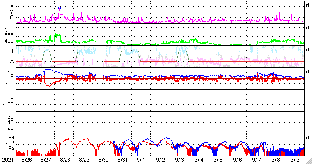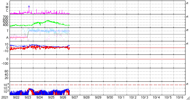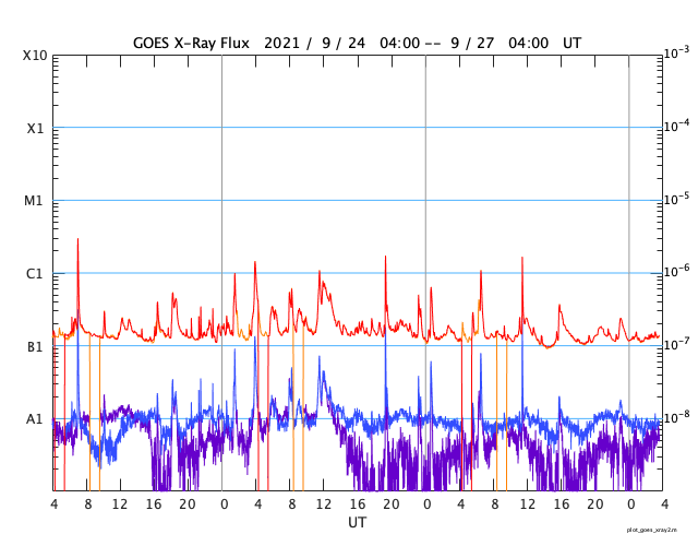 GOES衛星の太陽X線強度。赤・橙 = 0.1〜0.8 nm、青・紫 = 0.05〜0.4 nm (c) データ:NOAA/SWPC、作図:宇宙天気ニュース ![]() | ||||||||||||||||||||||||||||||||||||||||||||||||||||||||||||||||||||||||||||||||||||||||||||||||||||||||||||||||||||||||||||||||||||||||||||||||||||||||||||||||||||||||||||||||||||||||||||||||||||||||||||||||||||||||||||