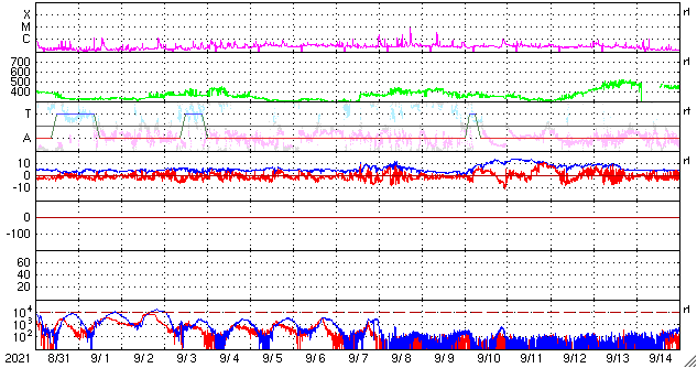 GOES衛星の太陽X線強度。赤・橙 = 0.1〜0.8 nm、青・紫 = 0.05〜0.4 nm (c) データ:NOAA/SWPC、作図:宇宙天気ニュース ![]() | |||||||||||||||||||||||||||||||||||||||||||||||||||||||||||||||||||||||||||||||||||||||||||||||||||||||||||||||||||||||||||||||||||||||||||||||||||||||||||||||||||||||||||||||||||||||||||||||||||||||||||||||||