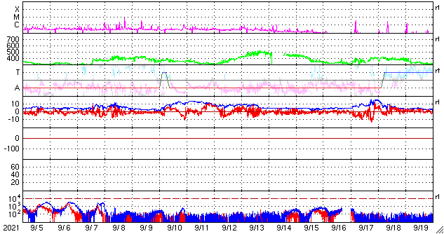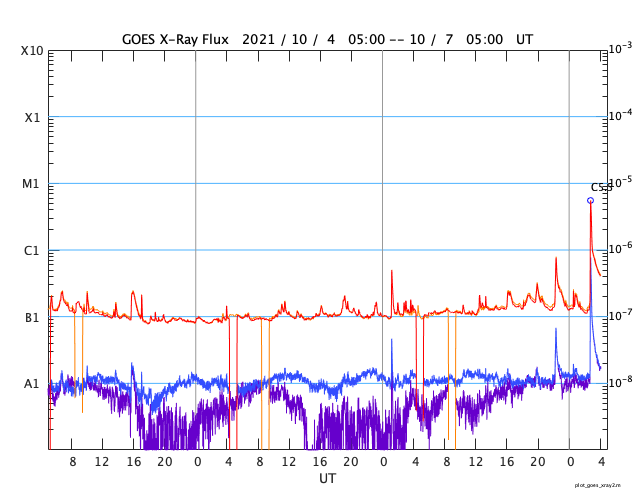 GOES衛星の太陽X線強度。赤・橙 = 0.1〜0.8 nm、青・紫 = 0.05〜0.4 nm (c) データ:NOAA/SWPC、作図:宇宙天気ニュース ![]() | ||||||||||||||||||||||||||||||||||||||||||||||||||||||||||||||||||||||||||||||||||||||||||||||||||||||||||||||||||||||||||||||||||||||||||||||||||||||||||||||||||||||||||||||||||||||||||||||||||||||||||||||