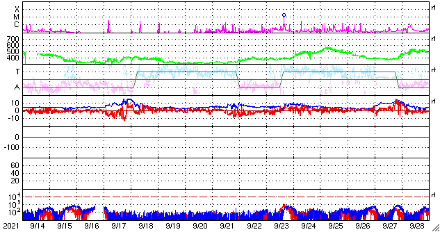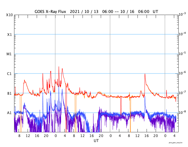 GOES衛星の太陽X線強度。赤・橙 = 0.1〜0.8 nm、青・紫 = 0.05〜0.4 nm (c) データ:NOAA/SWPC、作図:宇宙天気ニュース ![]() | ||||||||||||||||||||||||||||||||||||||||||||||||||||||||||||||||||||||||||||||||||||||||||||||||||||||||||||||||||||||||||||||||||||||||||||||||||||||||||||||||||||||||||||||||||||||||||||||||||||||||||||||||