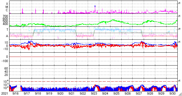 GOES衛星の太陽X線強度。赤・橙 = 0.1〜0.8 nm、青・紫 = 0.05〜0.4 nm (c) データ:NOAA/SWPC、作図:宇宙天気ニュース ![]() | ||||||||||||||||||||||||||||||||||||||||||||||||||||||||||||||||||||||||||||||||||||||||||||||||||||||||||||||||||||||||||||||||||||||||||||||||||||||||||||||||||||||||||||||||||||||||||||||||||||||||||||