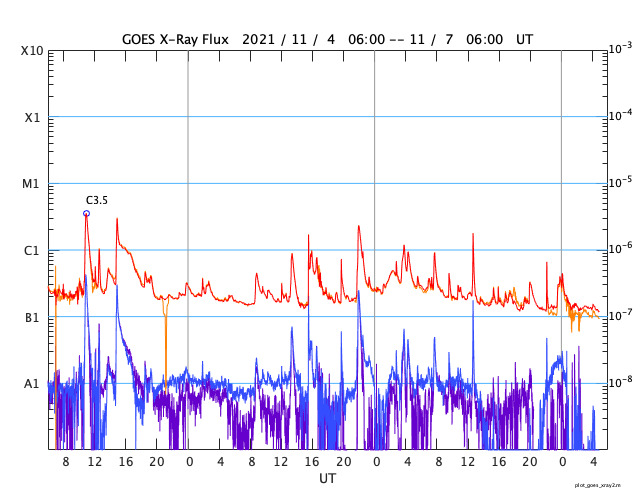 GOES衛星の太陽X線強度。赤・橙 = 0.1〜0.8 nm、青・紫 = 0.05〜0.4 nm (c) データ:NOAA/SWPC、作図:宇宙天気ニュース ![]() | ||||||||||||||||||||||||||||||||||||||||||||||||||||||||||||||||||||||||||||||||||||||||||||||||||||||||||||||||||||||||||||||||||||||||||||||||||||||||||||||||||||||||||||||||||||||||||||||||||||||||||||||||||||||||||