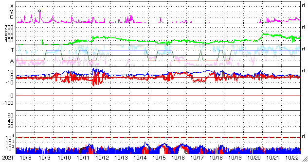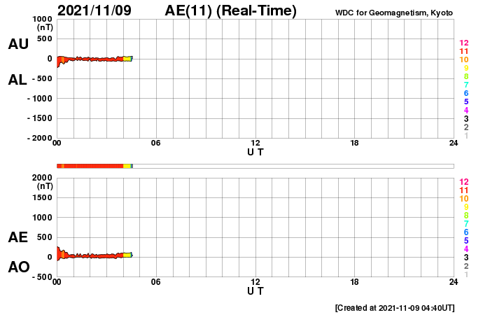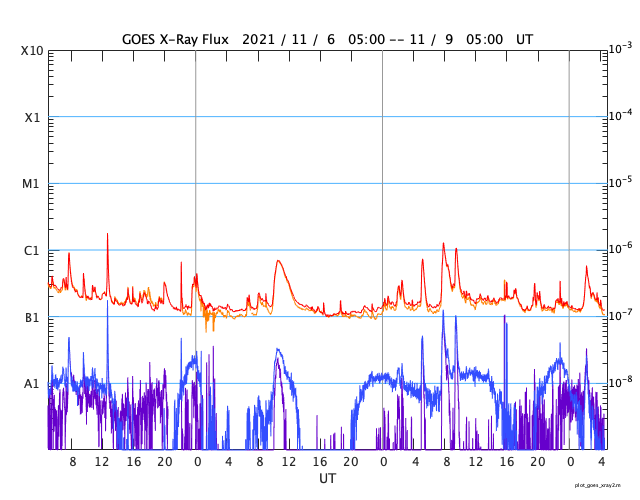 GOES衛星の太陽X線強度。赤・橙 = 0.1〜0.8 nm、青・紫 = 0.05〜0.4 nm (c) データ:NOAA/SWPC、作図:宇宙天気ニュース ![]() | ||||||||||||||||||||||||||||||||||||||||||||||||||||||||||||||||||||||||||||||||||||||||||||||||||||||||||||||||||||||||||||||||||||||||||||||||||||||||||||||||||||||||||||||||||||||||||||||||||||||||||||||||||||