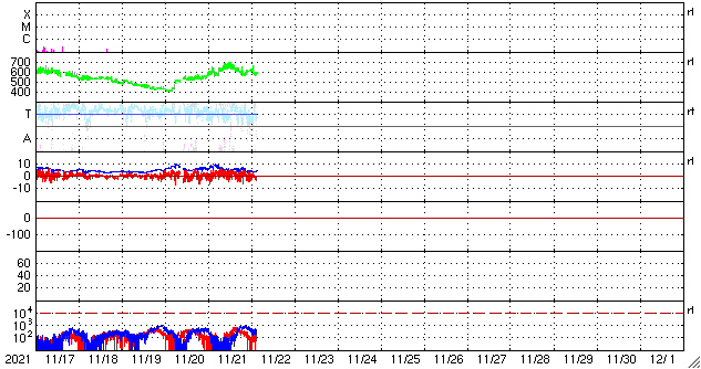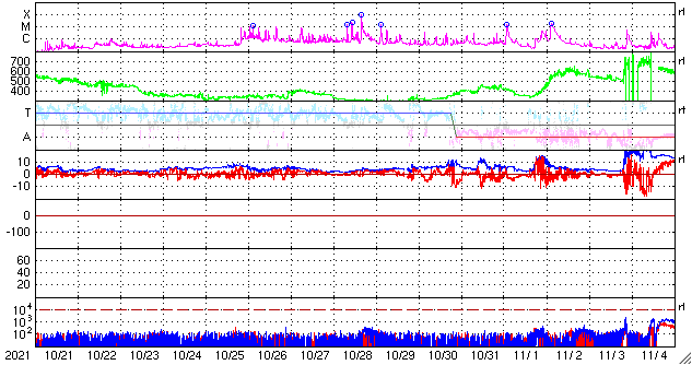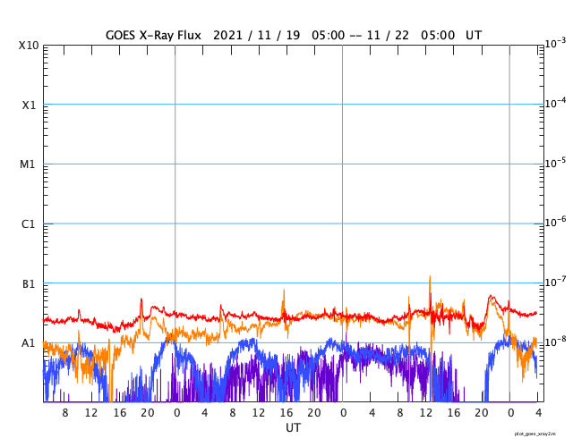 GOES衛星の太陽X線強度。赤・橙 = 0.1〜0.8 nm、青・紫 = 0.05〜0.4 nm (c) データ:NOAA/SWPC、作図:宇宙天気ニュース ![]() | ||||||||||||||||||||||||||||||||||||||||||||||||||||||||||||||||||||||||||||||||||||||||||||||||||||||||||||||||||||||||||||||||||||||||||||||||||||||||||||||||||||||||||||||||||||||||||||||||||||||||||||||||