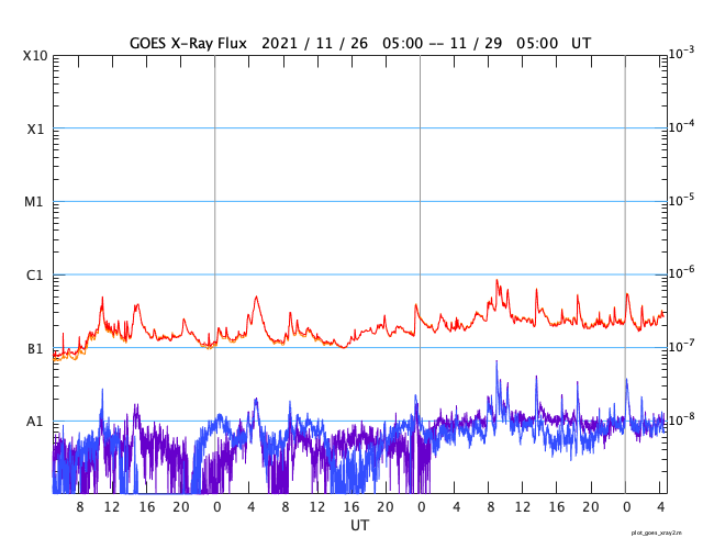 GOES衛星の太陽X線強度。赤・橙 = 0.1〜0.8 nm、青・紫 = 0.05〜0.4 nm (c) データ:NOAA/SWPC、作図:宇宙天気ニュース ![]() | ||||||||||||||||||||||||||||||||||||||||||||||||||||||||||||||||||||||||||||||||||||||||||||||||||||||||||||||||||||||||||||||||||||||||||||||||||||||||||||||||||||||||||||||||||||||||||||||||||||||||||||||||||||