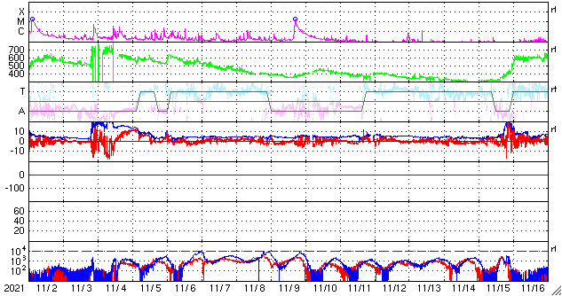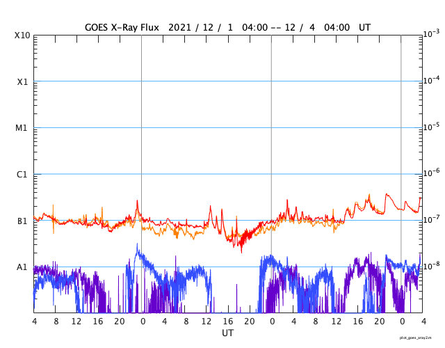 GOES衛星の太陽X線強度。赤・橙 = 0.1〜0.8 nm、青・紫 = 0.05〜0.4 nm (c) データ:NOAA/SWPC、作図:宇宙天気ニュース ![]() | ||||||||||||||||||||||||||||||||||||||||||||||||||||||||||||||||||||||||||||||||||||||||||||||||||||||||||||||||||||||||||||||||||||||||||||||||||||||||||||||||||||||||||||||||||||||||||||||||||||||||||||||||