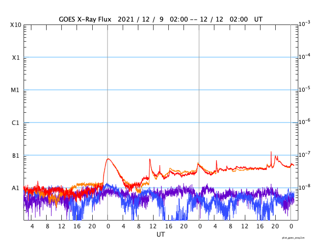 GOES衛星の太陽X線強度。赤・橙 = 0.1〜0.8 nm、青・紫 = 0.05〜0.4 nm (c) データ:NOAA/SWPC、作図:宇宙天気ニュース ![]() | ||||||||||||||||||||||||||||||||||||||||||||||||||||||||||||||||||||||||||||||||||||||||||||||||||||||||||||||||||||||||||||||||||||||||||||||||||||||||||||||||||||||||||||||||||||||||||||||||||||||||||||
