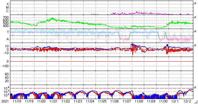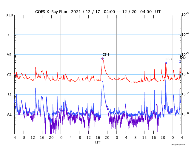GOES衛星の太陽X線強度。赤・橙 = 0.1〜0.8 nm、青・紫 = 0.05〜0.4 nm (c) データ:NOAA/SWPC、作図:宇宙天気ニュース ![]() | ||||||||||||||||||||||||||||||||||||||||||||||||||||||||||||||||||||||||||||||||||||||||||||||||||||||||||||||||||||||||||||||||||||||||||||||||||||||||||||||||||||||||||||||||||||||||||||||||||||||||||||||||||||||||||||||||||||||||||||||