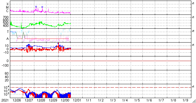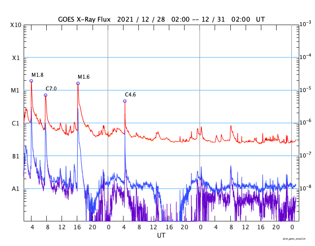 GOES衛星の太陽X線強度。赤・橙 = 0.1〜0.8 nm、青・紫 = 0.05〜0.4 nm (c) データ:NOAA/SWPC、作図:宇宙天気ニュース ![]() | |||||||||||||||||||||||||||||||||||||||||||||||||||||||||||||||||||||||||||||||||||||||||||||||||||||||||||||||||||||||||||||||||||||||||||||||||||||||||||||||||||||||||||||||||||||||||||||||||||||||||||||||||||||||||||||