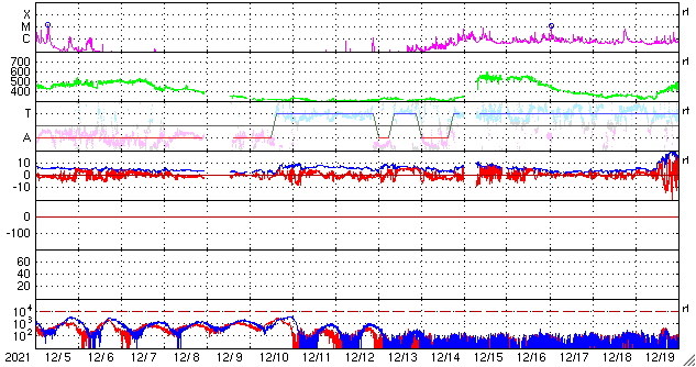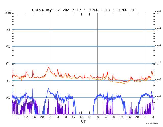 GOES衛星の太陽X線強度。赤・橙 = 0.1〜0.8 nm、青・紫 = 0.05〜0.4 nm (c) データ:NOAA/SWPC、作図:宇宙天気ニュース ![]() | ||||||||||||||||||||||||||||||||||||||||||||||||||||||||||||||||||||||||||||||||||||||||||||||||||||||||||||||||||||||||||||||||||||||||||||||||||||||||||||||||||||||||||||||||||||||||||||||||||||||||||||||||