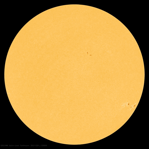 (c) 黒点データ:WDC-SILSO、作図:宇宙天気ニュース ![]() 12月の太陽黒点の推移。SDO衛星。 (c) SDO (NASA)、(動画加工 : 宇宙天気ニュース) ![]() 1970年以降の太陽黒点相対数の長期変化。 (c) 黒点データ:WDC-SILSO、作図:宇宙天気ニュース ![]() SDO衛星のAIA193カメラによる太陽コロナの様子 (c) SDO (NASA) ![]() SDO衛星による太陽の可視光写真。マウスの矢印を写真に重ねると、黒点番号付きの写真に切り替わります。 (c) SDO (NASA) ![]() GOES衛星の太陽X線強度。赤・橙 = 0.1〜0.8 nm、青・紫 = 0.05〜0.4 nm (c) データ:NOAA/SWPC、作図:宇宙天気ニュース ![]() DSCOVRが観測した太陽風の磁場(黒線は全体の強度、赤線は南北成分) 磁場の向き、プラズマの密度、速度、温度 (c) データ:NOAA/SWPC、作図:宇宙天気ニュース ![]() AE指数(速報値) 下段のAEグラフの値が高くなると、オーロラ活動が活発化しています。 (c) 京都大学WDC ![]() ![]() 27日の太陽周期に合わせたデータプロット 太陽が同じ面を地球に向けていた27日前の変化から、今後を予想することができます。 (c) 作図:宇宙天気ニュース