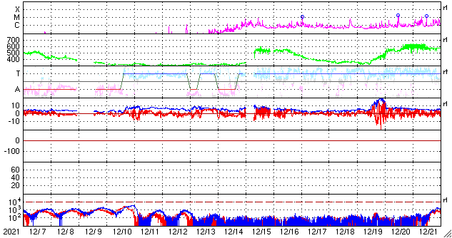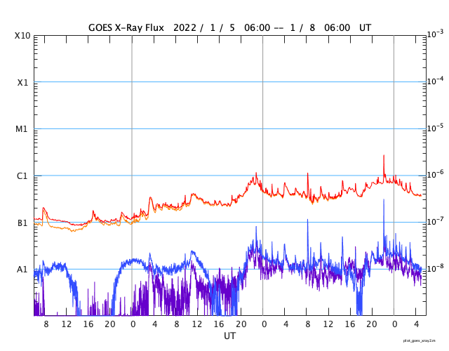 GOES衛星の太陽X線強度。赤・橙 = 0.1〜0.8 nm、青・紫 = 0.05〜0.4 nm (c) データ:NOAA/SWPC、作図:宇宙天気ニュース ![]() | ||||||||||||||||||||||||||||||||||||||||||||||||||||||||||||||||||||||||||||||||||||||||||||||||||||||||||||||||||||||||||||||||||||||||||||||||||||||||||||||||||||||||||||||||||||||||||||||||||||||||||||||||